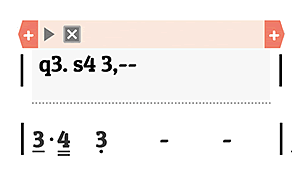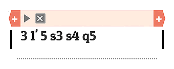 左右各有一個紅底白字的“+”,分別為此段小節左右方新增小節的按鈕。