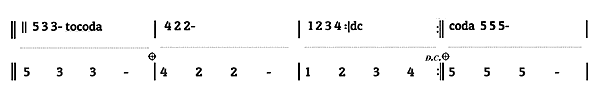 coda 在簡語言中是這樣演示的 || 533- tocoda 422- 1234 :|dc coda 555- ,範例如下。。