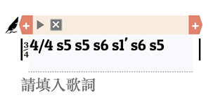 簡語言是在最前方打上您需要的拍號,例如:輸入 " 4/4 " 然後 空格} ,接著輸入這小節的簡譜便可修改或設定此小節的拍號。目前僅支援 2/4、3/4、4/4 拍號。