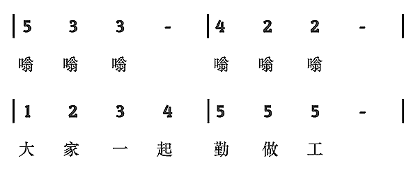 根據表格以簡語言輕鬆打出簡譜,下圖為範例。